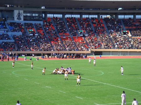 前半、風上でなおかつ慶応ボールのキックオフで明治陣内に攻め込む慶応は、