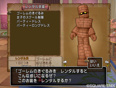 ・「そうび」画面にて、通常の装備とレンタル衣装を切り替えることができます。