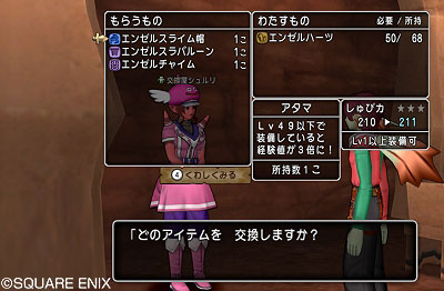 「エンゼルハーツ」を「エンゼルスラバルーン」や「エンゼルチャイム」などの新アイテムに交換してもらえます!
