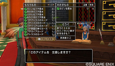 娯楽島ラッカランのカジノでは、魔法の迷宮のボスカードをランクの低いカードに交換できたり、各種香水を交換してもらえるそうよ!