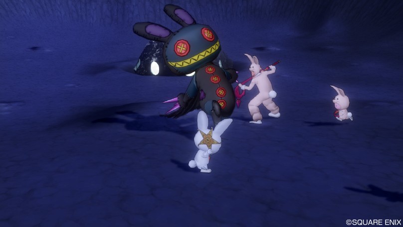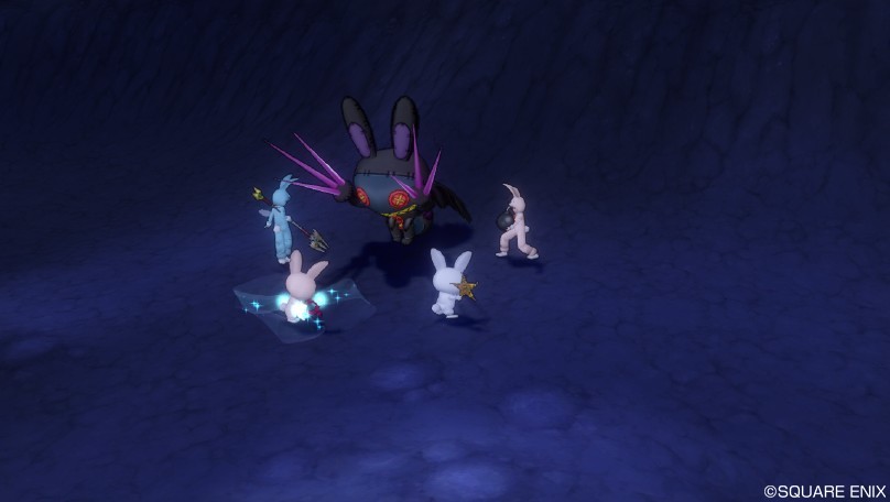 コスプレで、青、白、ピンク、茶色にさせられたウサギで戦います。