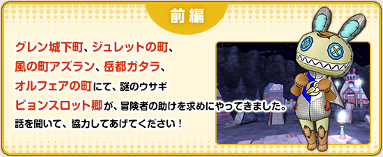 オファーは、オルフェア、ガタラ、アズラン、グレン、ジュレットの各町にいるうさぎのNPC。