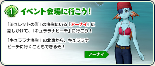 ビーチへ行くと団長がいるので話しかけるとイベントクエストが受けれます