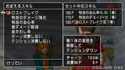 問題は1部のボス戦以外で使い道がなさそうなこの特技に180も振れるかどうかだな~