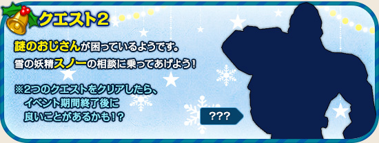 1つ目の町にいる「スノー」に「メリークリスマス」と言ってクエストスタート。