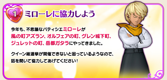 毎度おなじみ「ミローレ」に話しかけるとイベントスタートです。