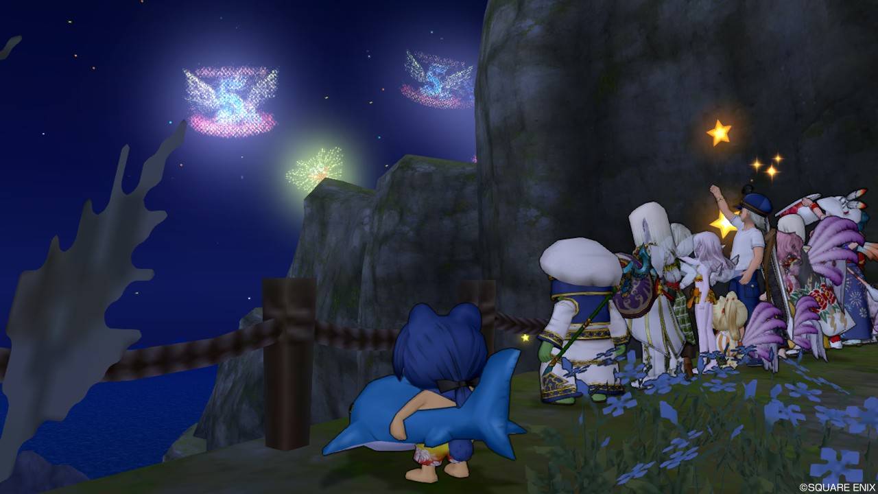 という事でドラクエ10の場合、アニバーサリーでぃや年越しカウントダウンはここで花火大会が行われます。