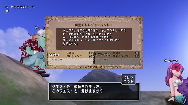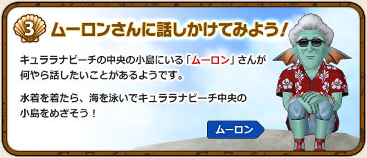 入口のビーチから離れた小島にいるムーロンさんからクエストを受けます