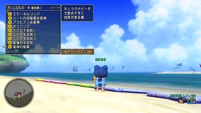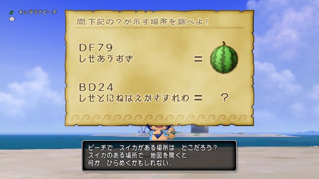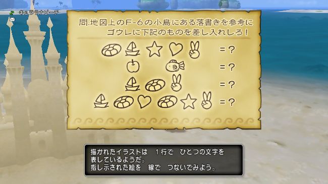 砂の城を調べると次なるクイズが書いてあるだいじなもの「ふるびた羊皮紙2」が手に入ります