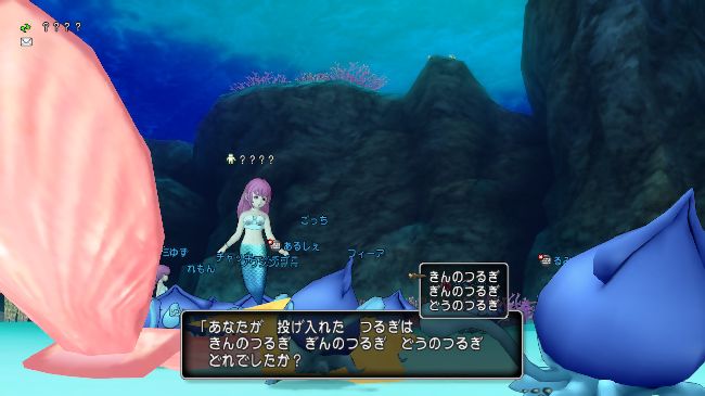投げ入れると人魚が出て来てこう言います