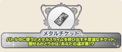 しかもテリーやドラクエモンスターズとお馴染みのメタルエリアにいけるチケットかと思いきや・・・・