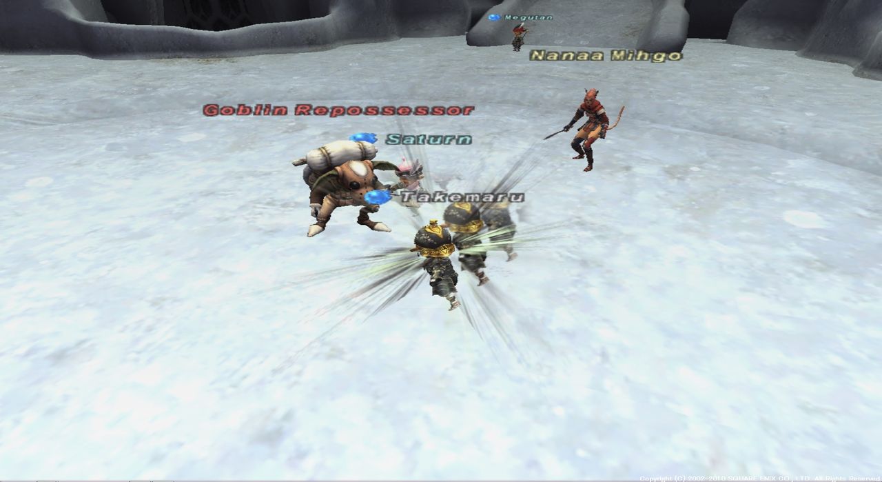 敵は、ウィンダスクエストでおなじみのナナミーゴ+ゴブリン3匹。